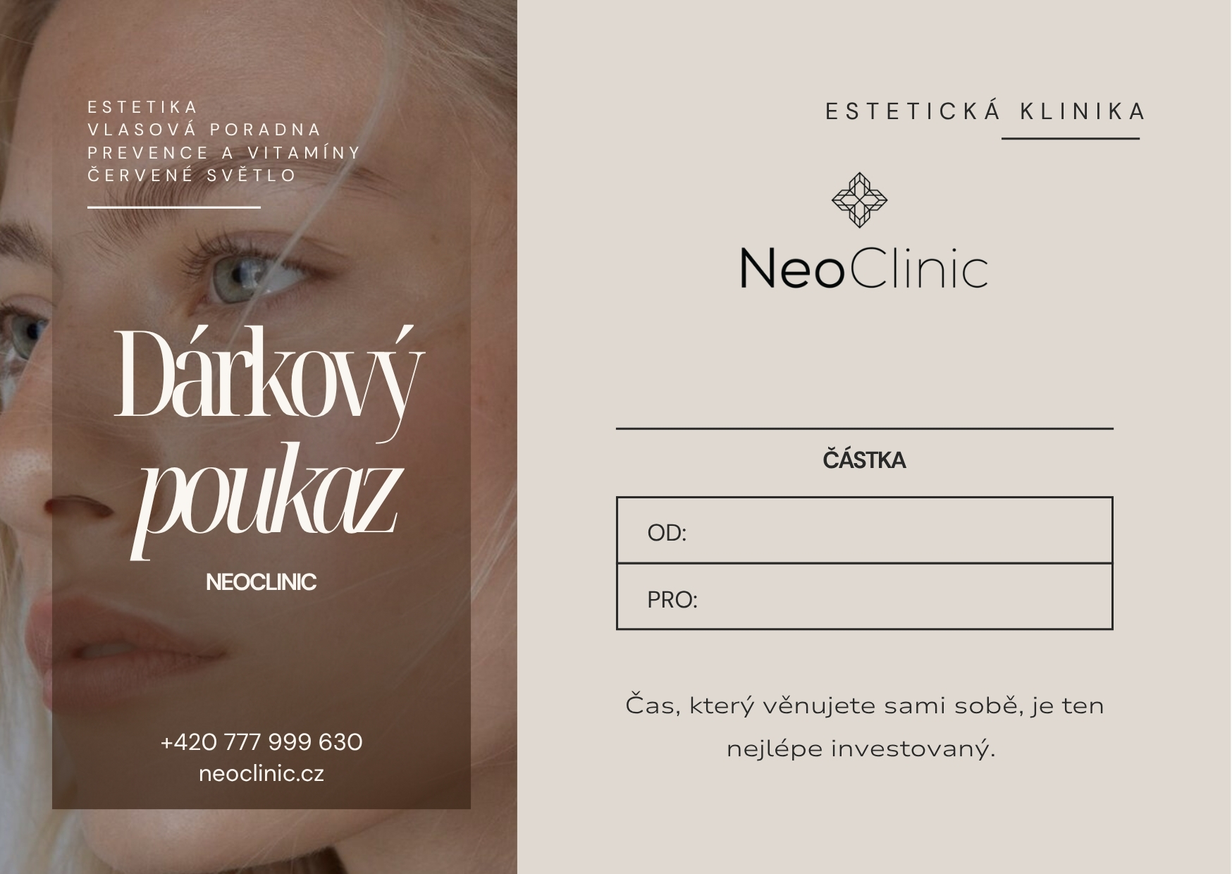 Pro zájemce nabízíme možnost zakoupit dárkový poukaz na jakékoliv ošetření z nabídky Neoclinic.